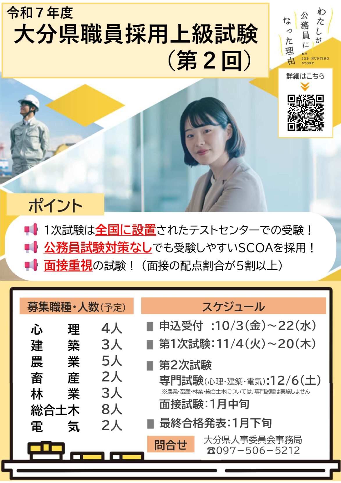 令和7年度大分県職員採用上級試験(第2回)受験案内←こちらをクリック(PDF)