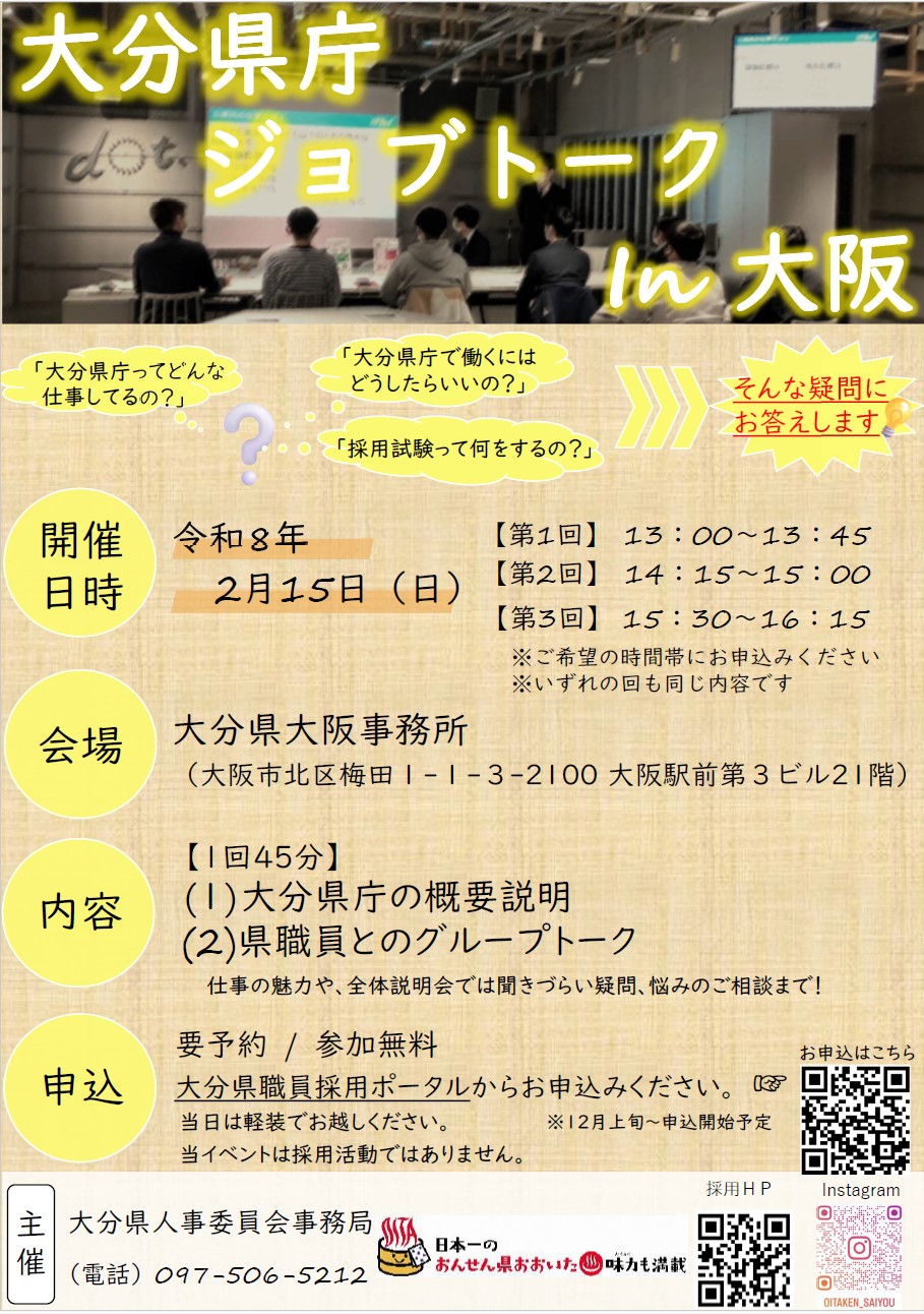 大分県庁ジョブトーク in 大阪を開催します!